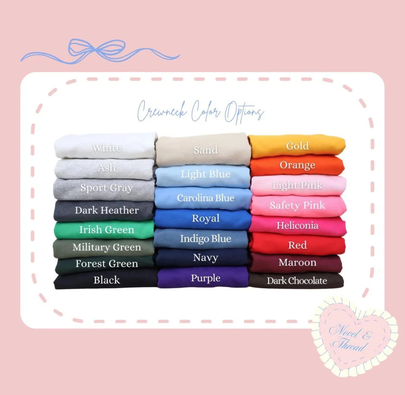 Categories: All Little Darlings Personalized Gifts Custom Crews Custom Hats Custom Totes Signature Crews Signature Tees & Crops Gift Card Shop All Little Darlings Personalized Gifts Custom Crews Custom Hats Custom Totes Signature Crews Signature Tees & Crops Gift Card Ascendance Order $233.56 Sold Out Mother Hood Crew $28.00 Order for Virginia $80.00 Monogram Tote $25.00 Cozy Custom Blanket $32.00 Boy’s Short Sleeve Romper $30.00 Unisex Sweatshirt Bubble $30.00 Flutter Sleeve Bubble $30.00 Unisex Long Sleeve Gown $30.00 Unisex Seersucker Sun Bubble $32.00 Boys Polo Romper $30.00 Girl Short Sleeve Ruffle Romper $30.00 Girls Ruffle Dress $30.00 Girls Long Sleeve Ruffle Gown $30.00 Short Sleeve Infant Body Suit $25.00 Sorority Oversized Tote with Name $50.00 Custom Sorority Name Crewneck $25.00 Custom Sorority Est Dolphin Crew $28.00 Greek Teddy Custom Crew $28.00 Custom Teddy Crew $28.00 Monochrome Name Crew $32.00 A Cool Crew for the Coolest of Aunts $28.00 City Skyline Crew $28.00 Custom Floral Football Helmet Crew $28.00 Custom Book Club Crew $35.00 Custom Name & Title Crew $28.00 Custom Team Spirit Crew $28.00 Custom Scripture Crew $28.00 Custom Locket Crew $28.00 Peace Out Grad Hat $28.00 Rodeo Cowboy Crew $35.00 Bachelorette Crew $28.00 Nutcracker Trio Crew $28.00 Trick or Treat Crew $28.00 Dilly Dally Silly Goose Crew $28.00 Gingham USA Baby Tee $55.00 Lace USA Baby Tee $55.00 Gingham Flag Baby Tee $55.00 1776 Baby Tee $55.00 Patchwork Flag Baby Tee $55.00 Land of Liberty Baby Tee $55.00 Baseball Icons and Bow Crew $65.00 Sourdough, Don’t Get Me Started Crew $28.00 Gift Card from $25.00 Cutie American Flag Tee $28.00 Cutie American Flag Tote $28.00 Bow Sash -Seersucker and Gingham $25.00 Custom Embroidered Text Hats $25.00 Mon Cheri Crew $28.00 Strawberries Crew $28.00 Pink Florida Crew $28.00 Teacher Crew $28.00 Butter Stick Embroidered Crew $28.00 Lemon Truck Crew $28.00 Collegiate Letters, Appliqué Crew $45.00 Cutie American Flag Crew $28.00 Custom Car Crew $60.00 United Bows of America Sweatshirt Crew $28.00 Custom Word Applique Crew $45.00 Pencil Bow with Teacher Name Tote $55.00 Mama Applique Customizable Crew $40.00 Custom Text or Design with Applique Bow Crew $50.00 Appliqué Bow Add On $18.00 The Lord is my Shepherd Crew $28.00 She Will Run Crew $28.00 Fruits of The Spirit Crew $28.00 God is Good Bow Crew $28.00 Abide John 15 Crew $28.00 Esther 414 Crew $28.00 Personalization only (Item provided) from $2.00 Pickleball Tote $32.00 Book Lover Crew $25.00 Bookmarks are for Quitters Crew $28.00 Books are my Happy Place Crew $28.00 Bringing my Kindle Crew $28.00 Happiest when Reading Crew $25.00 Talk Bookish To Me Crew $28.00 Books and Coffee Crew $28.00 Bibliophile Society Crew $28.00 Read Floral Letter Hat $25.00 Floral Bride Hat $25.00