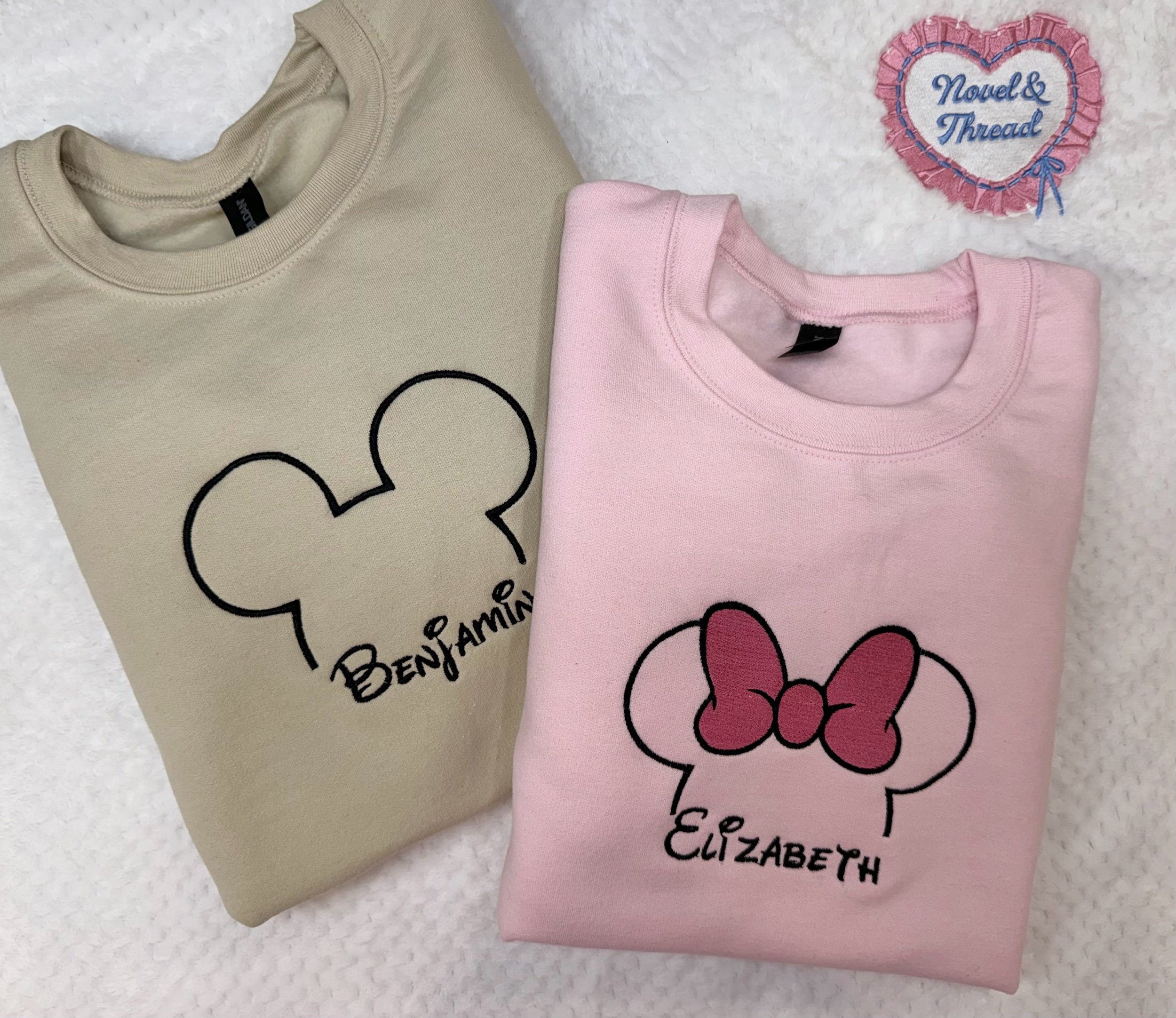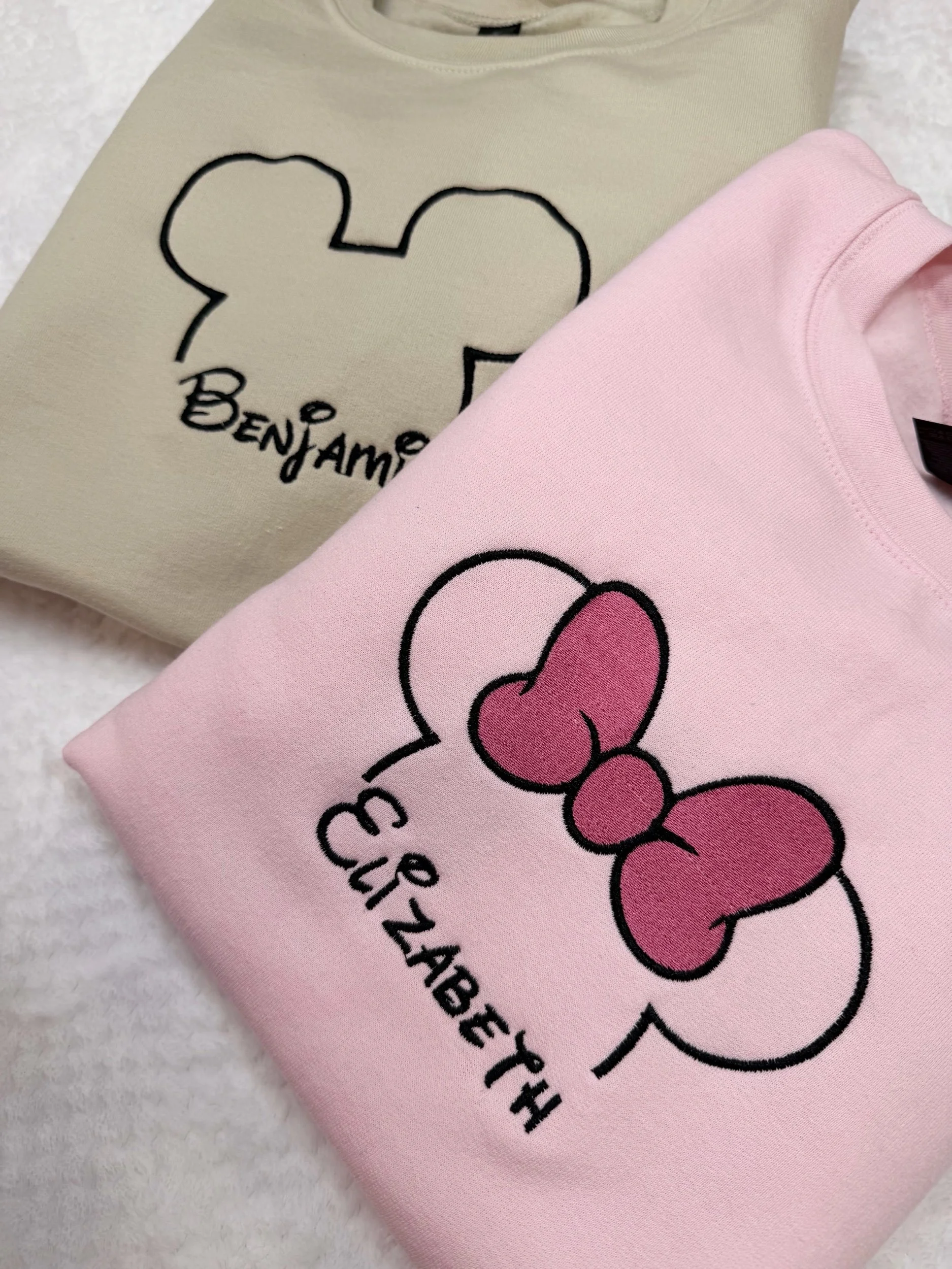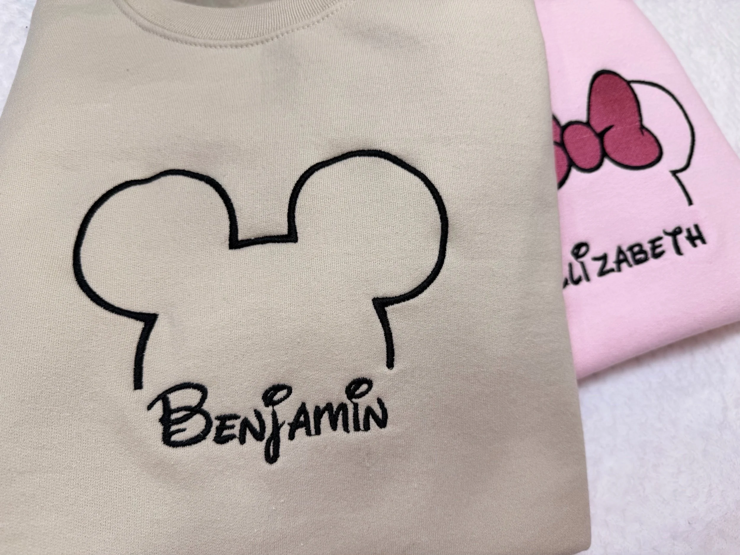 Make your family trip even more magical with these adorable personalized character ear crewnecks! Each sweatshirt features a simple, iconic ear silhouette and your choice of a classic or bow design — perfect for siblings, cousins, or the whole family on a special vacation.