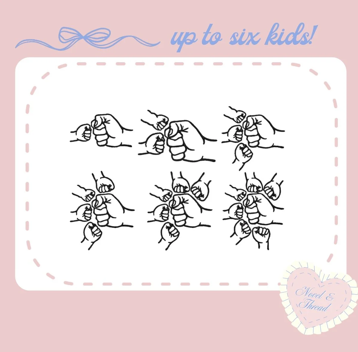 Choose one of the fist bump layouts and personalize it with your kids’ or grandkids’ names stitched onto each fist, creating a timeless keepsake that represents strength, connection, and family pride.