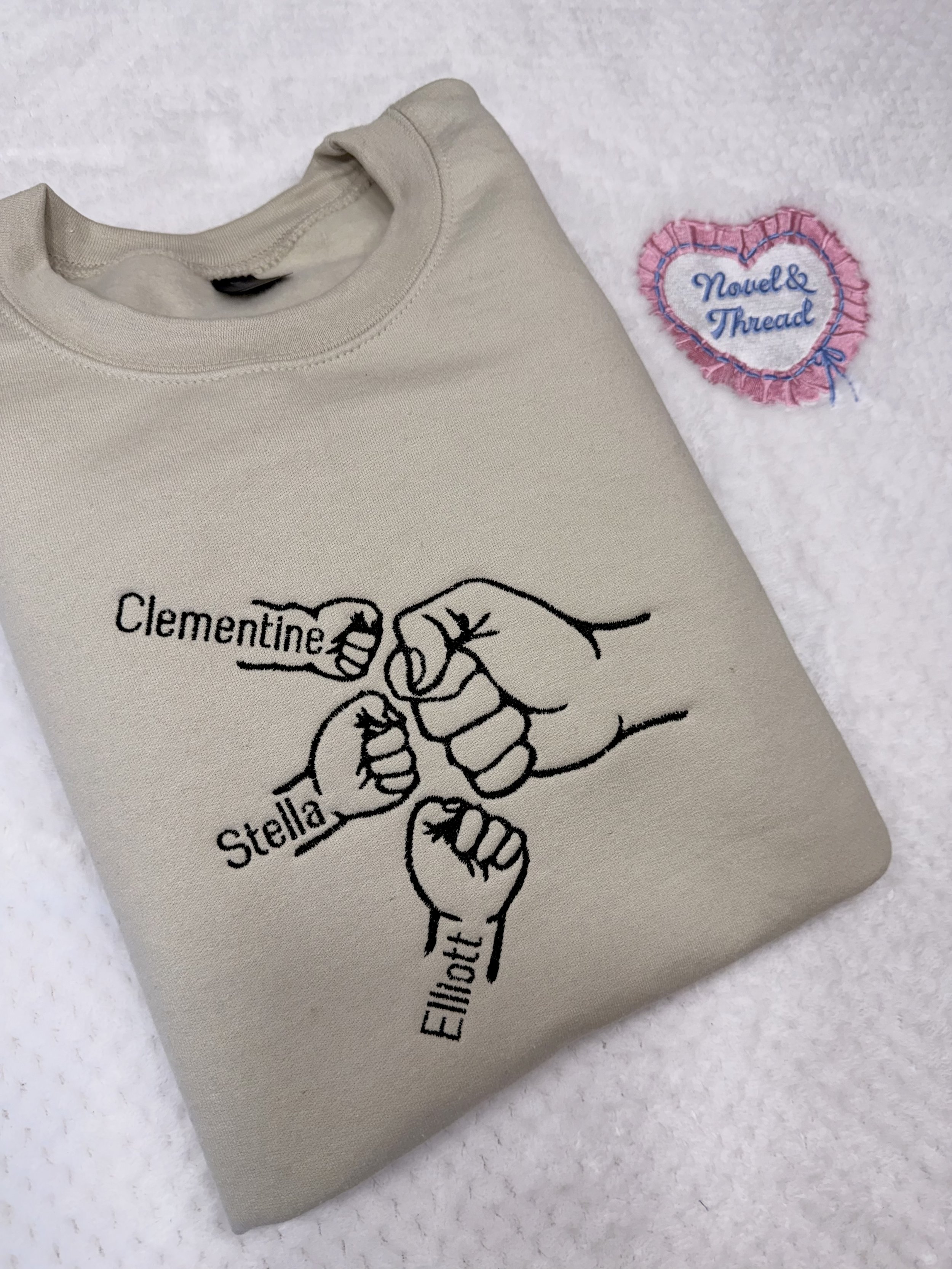 This custom embroidered family fist bump design is a meaningful way for dads and grandpas to keep their children or grandchildren close—right over the heart 🤍