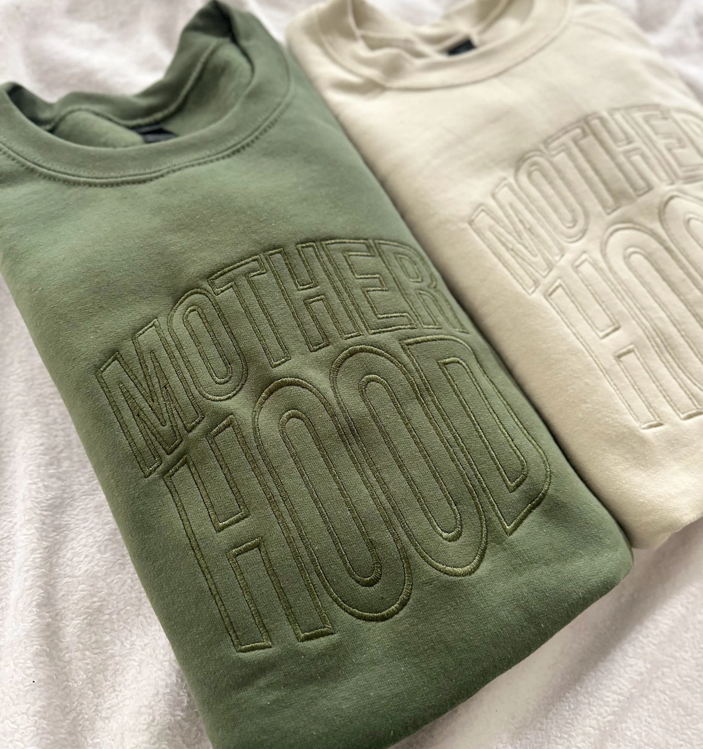 Celebrate every season of motherhood in cozy style with our Monochrome Motherhood Embroidered Crewneck Sweatshirt. This sweatshirt features bold tone-on-tone embroidery for a minimal, elevated look — or customize it with your own thread color for a personal touch. Whether you prefer earthy neutrals, soft pastels, or rich jewel tones, you can mix and match from a variety of sweatshirt and thread color options to create a piece that’s uniquely yours.
