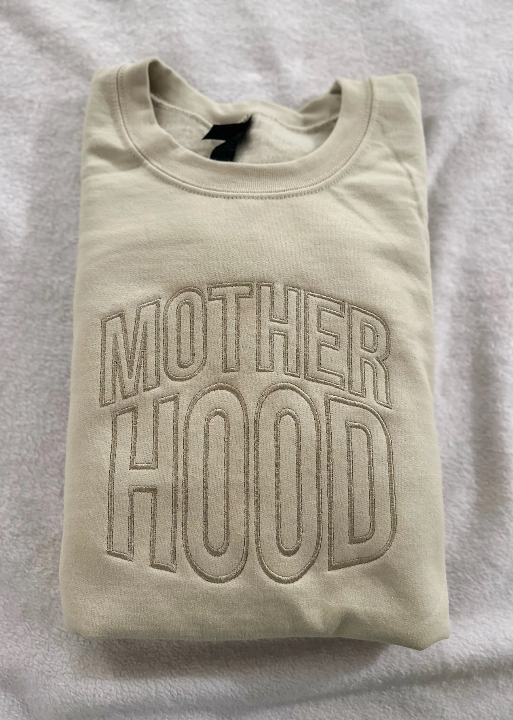 “MOTHERHOOD” raised embroidered design